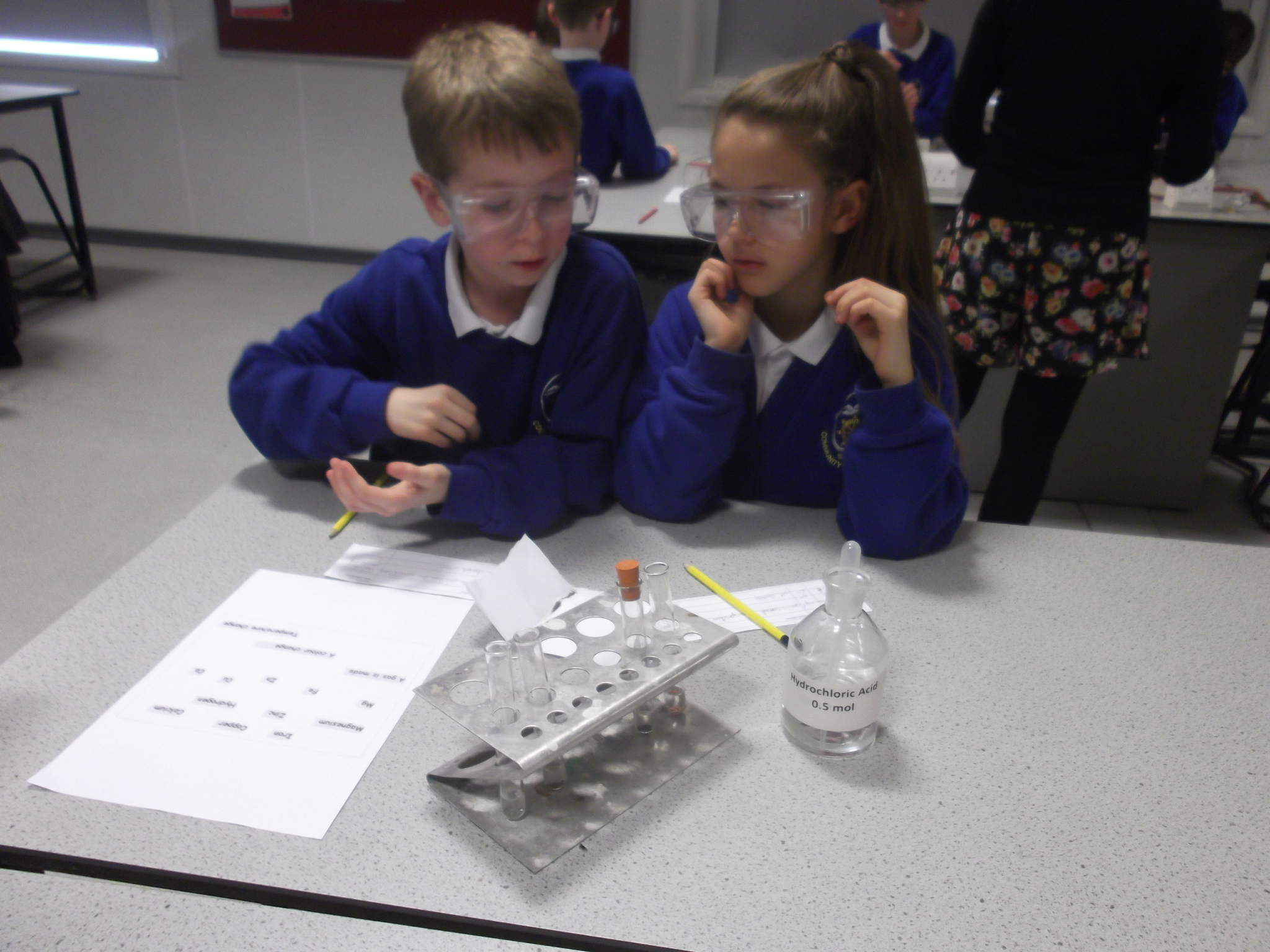 Yesterday we went on a trip to Caedmon to do some experiments. We were mixing acid and metals. Mr Togwell was a very good teacher; first we had to go get some safety glasses . Then we had to put some magnesium in to the acid which was in our testing tube and it fizzed up and the temperature changed then we did iron and the acid changed colour then we did zinc and it PRODUCED A GAS (AND THE SYMBOL WAS zn). then we did copper and nothing happened and no new substance WAS MADE (and the symbol FOR COPPER IS CU) THEN MR HARTLEY DID AN AMAZING EXPERIMENT WHICH INCLUDED A JELLY BABY AND MR HARTLEY BLEW A JELLY BABY UP AND THIS IS WHAT HAPPENED.BOOM AND THEN WE WALKED BACK TO SCHOOL . I LOVED IT.