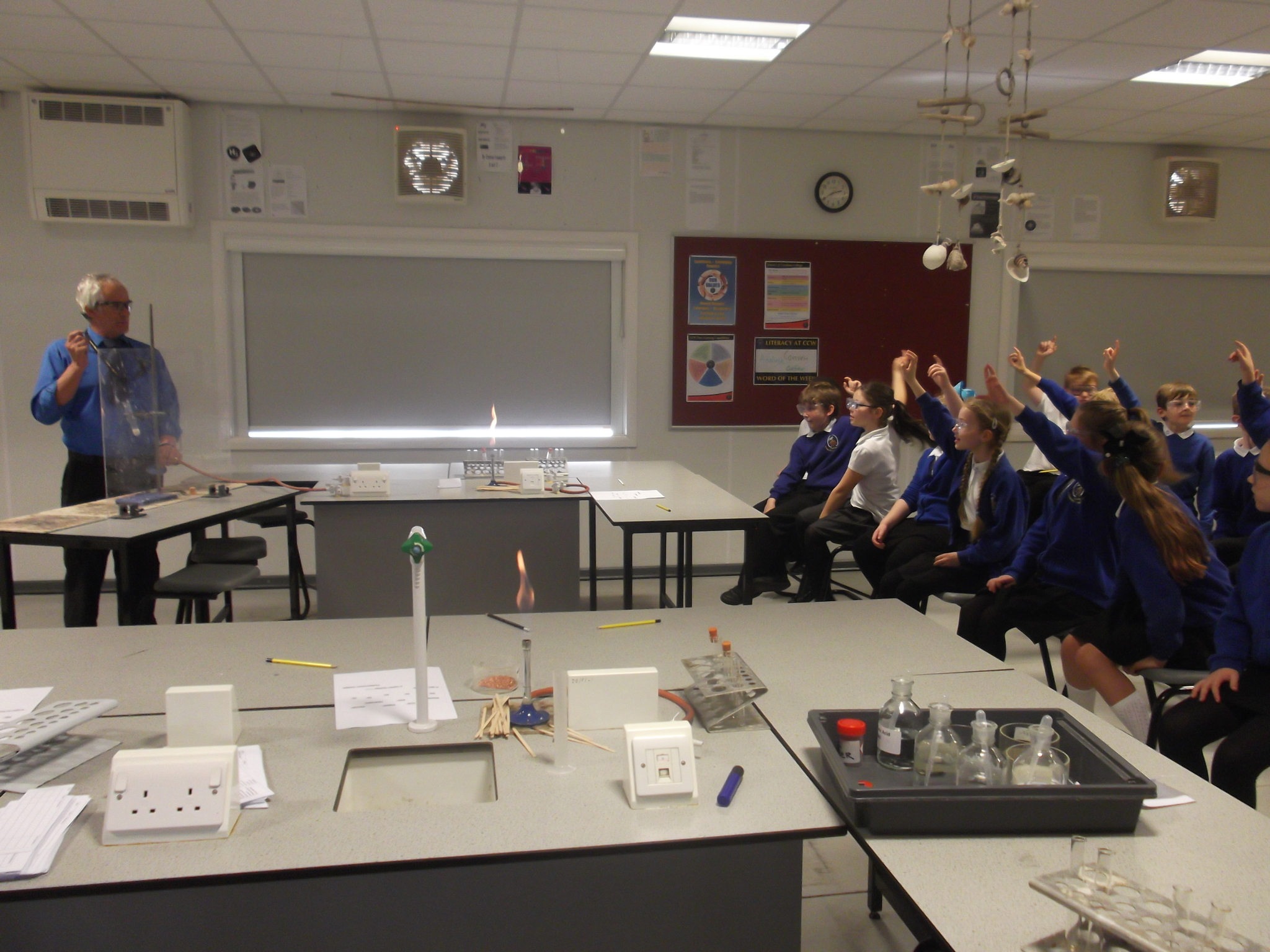 At Cadmeon this teacher called Mr Togwell was teaching us and we put in our testing tubes some iron, cooper, zink and much more and we put all the ingredients in and he taught us about how the colour changes in the hot temperature and we could see it changing as it was turning from cold to warm. Another teacher showed us using sugar in the test tube and there was loads of smoke in the science lab.