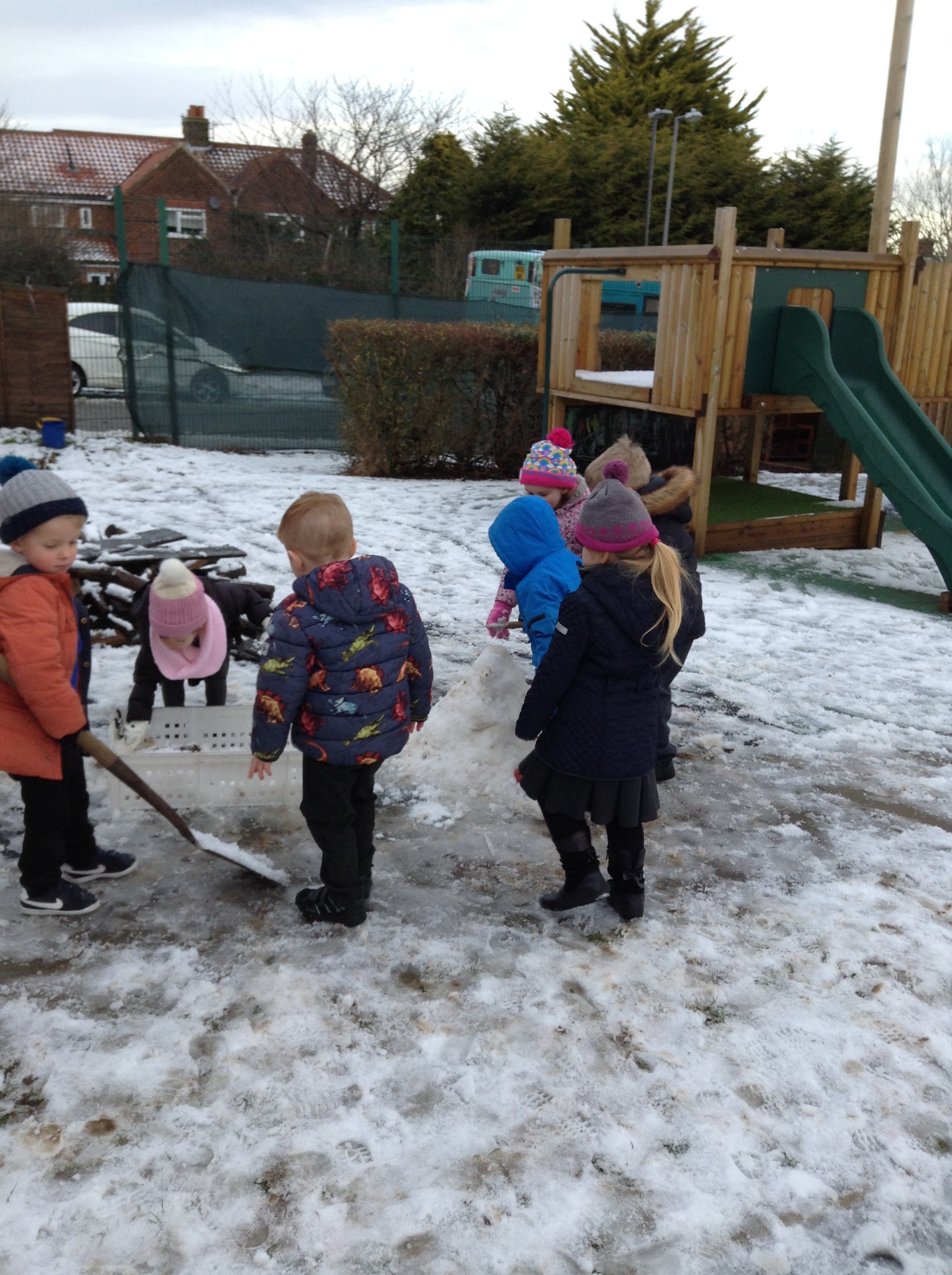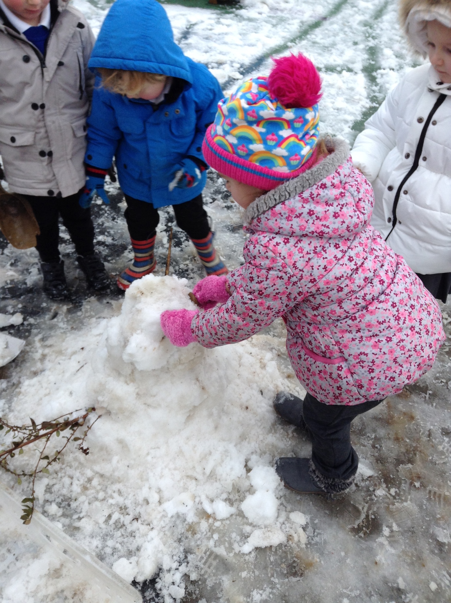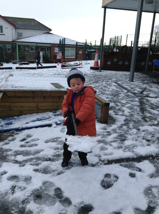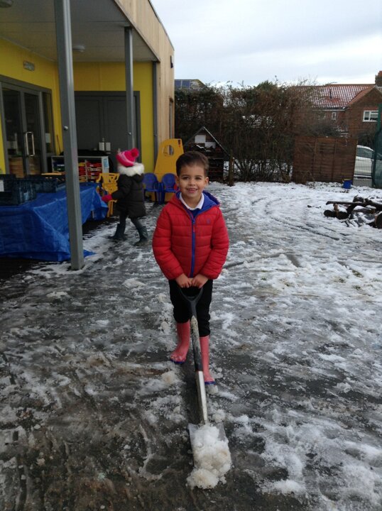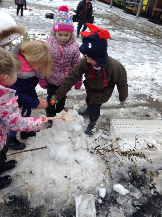 As we had snow on Thursday, we also talked about snow. We had great fun working collaboratively to build a snowman. We didn't have any carrots for his nose, so Destiny very sensibly suggested that we use one from the snack table.