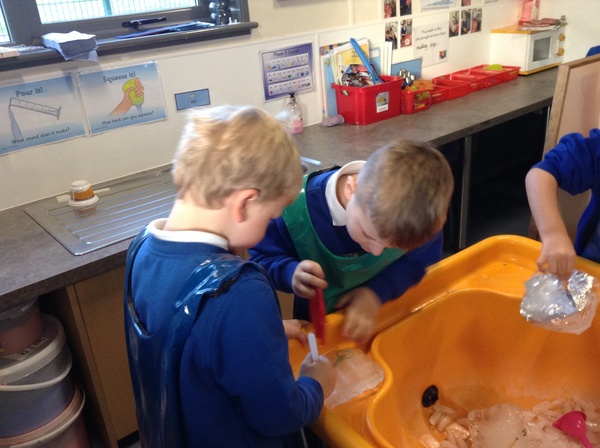 We have had a very exciting week investigating ice. Outside we have worked with Mrs Parker to find out how we could get the animals out of the blocks of ice. We have used a range of tools to find out which one is the most suitable. We have also put water into Mrs Reid's freezer (in the school kitchen) to see how ice is made.