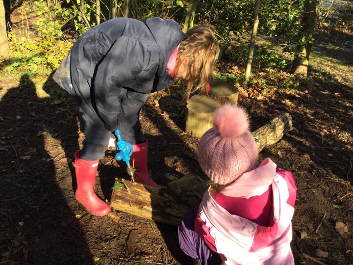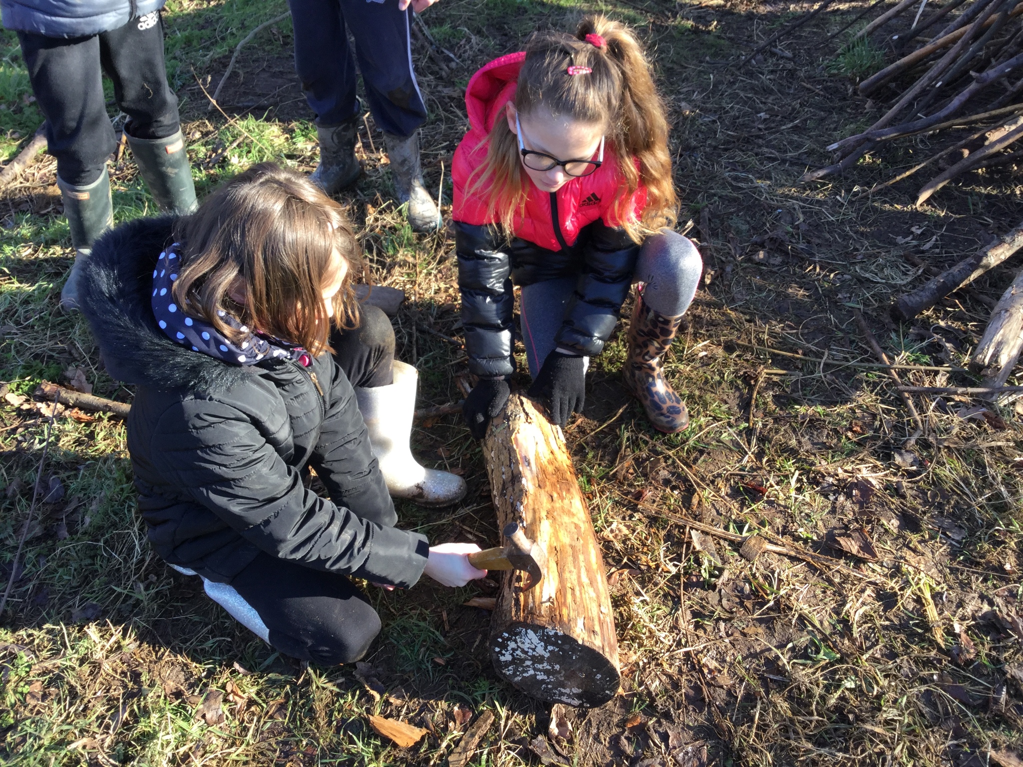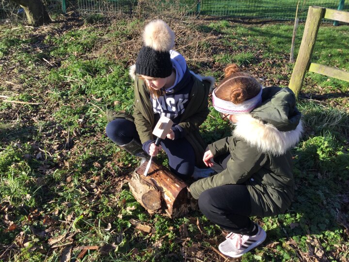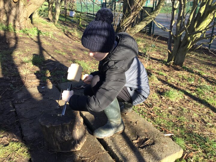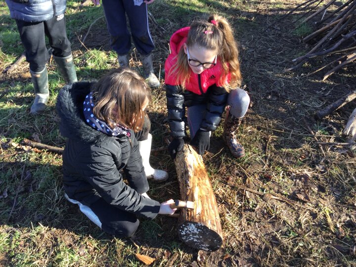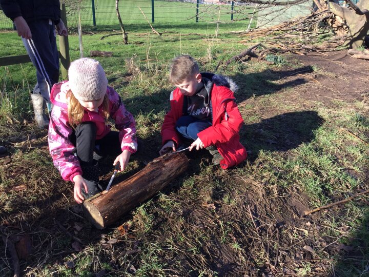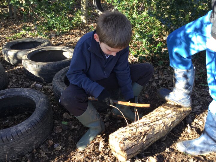 We had a bit of snow on Tuesday! It didn't amount to anything after all our excitement, so we were a little bit disappointed. Undeterred, we wrapped up well and went out with Mr Bates for a spot of Forest Schools on Wednesday morning. Again, it was cold, wet and muddy, but we had a brilliant time- like always! We used tools kindly bought for us by FOSS to chop, saw and chisel and undertake our own woodland management.