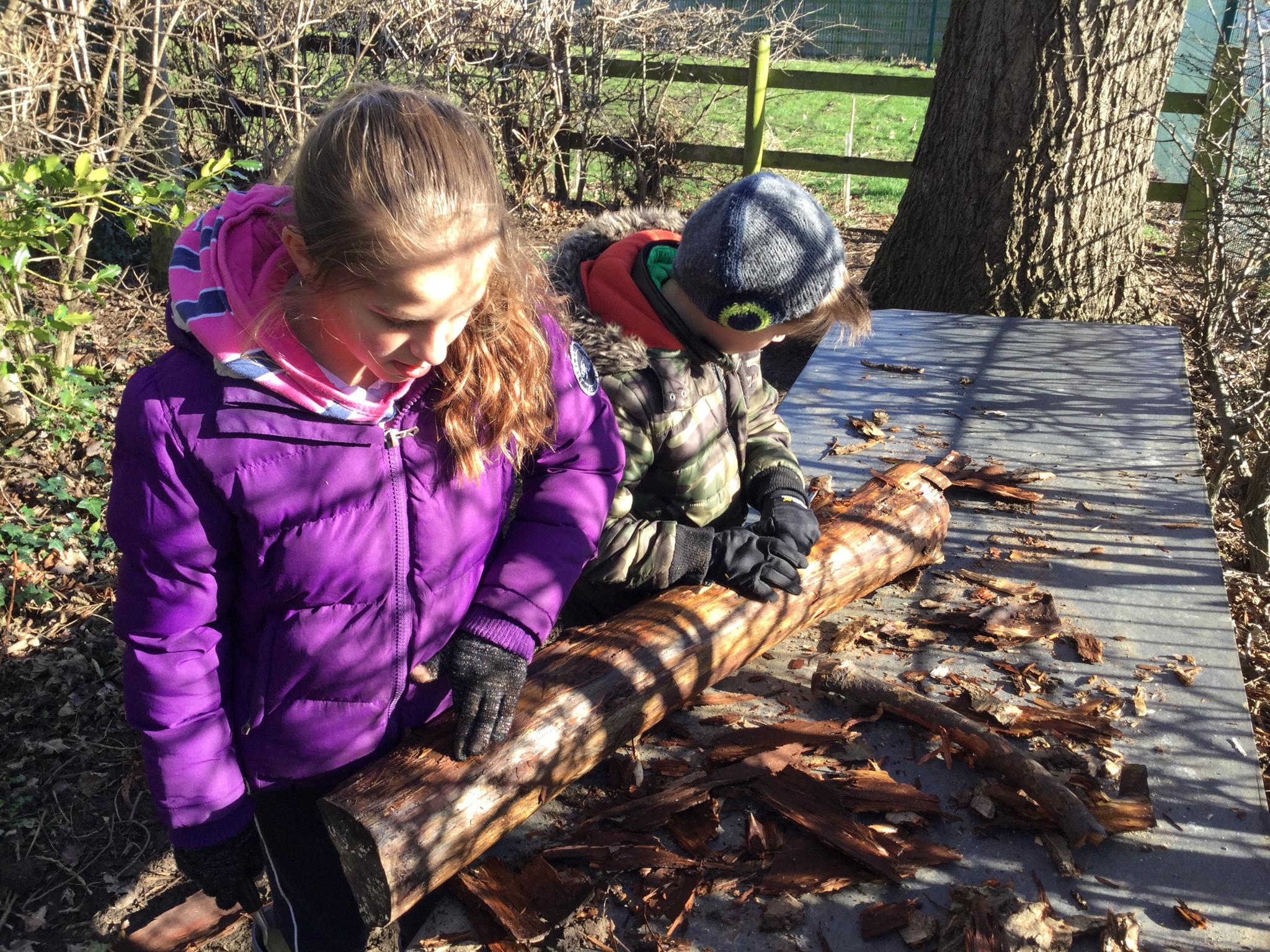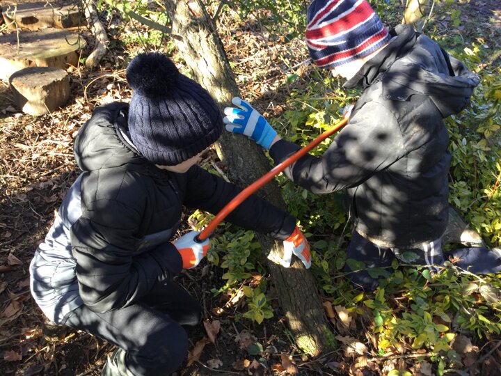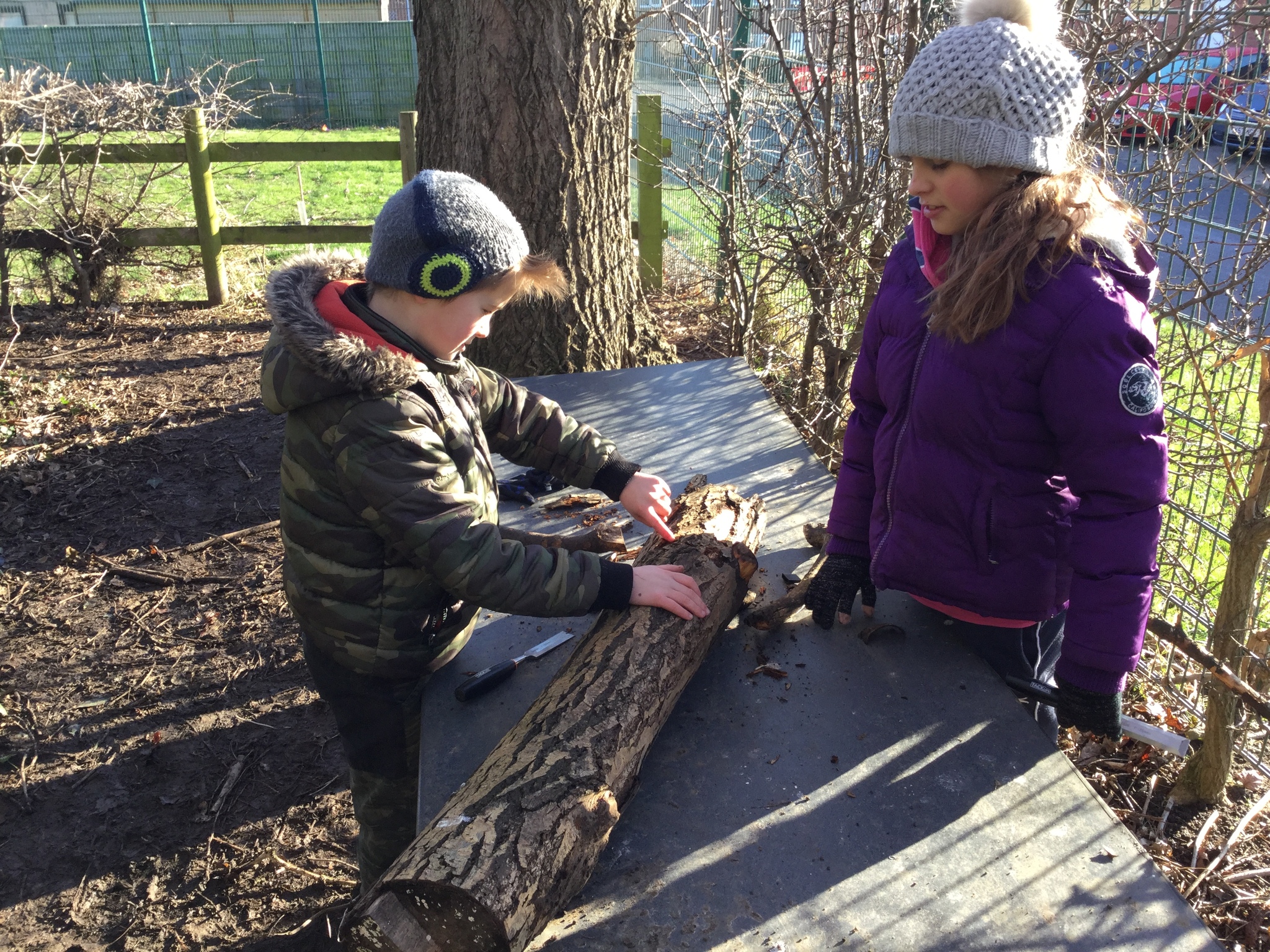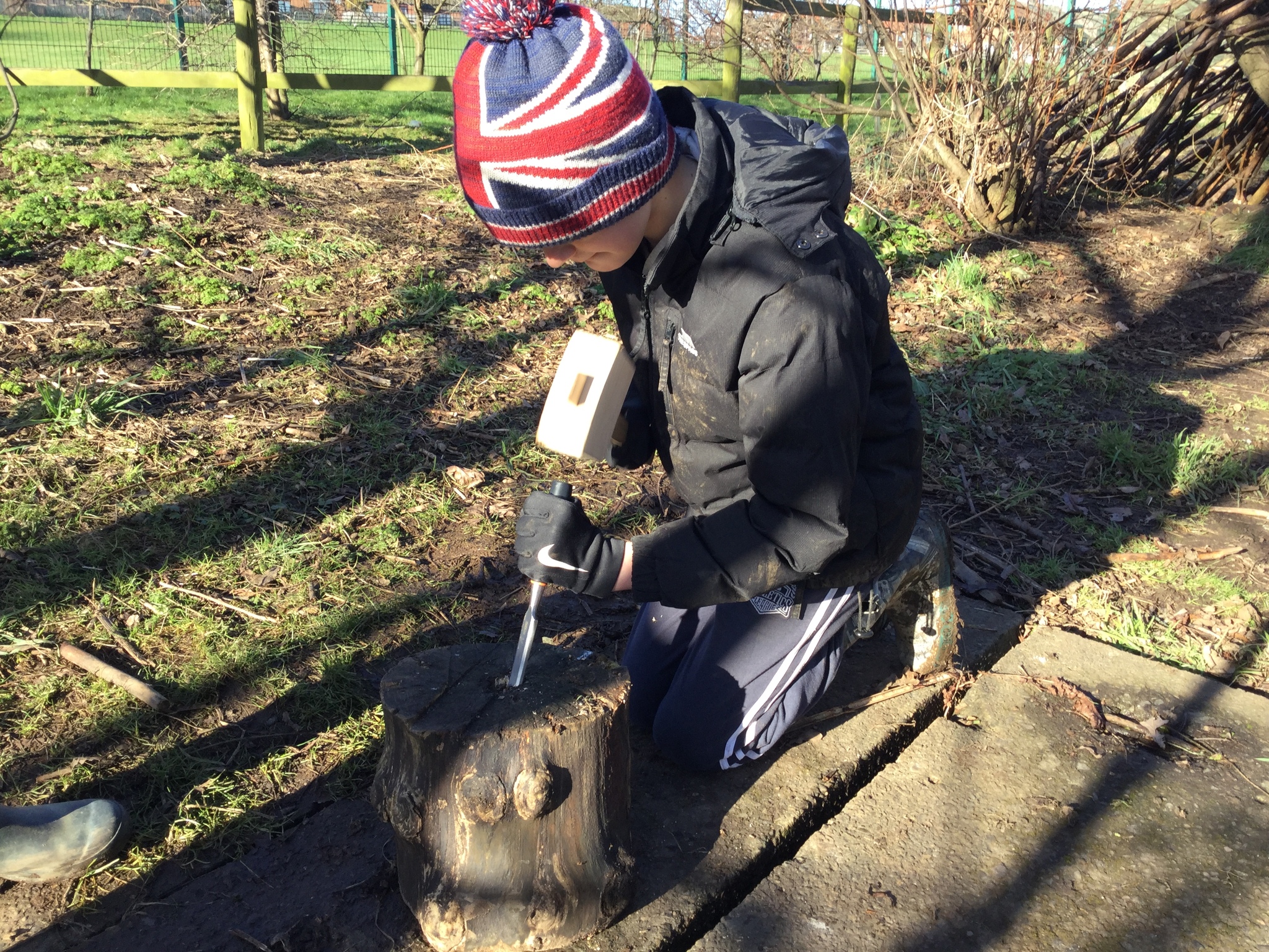 We had a bit of snow on Tuesday! It didn't amount to anything after all our excitement, so we were a little bit disappointed. Undeterred, we wrapped up well and went out with Mr Bates for a spot of Forest Schools on Wednesday morning. Again, it was cold, wet and muddy, but we had a brilliant time- like always! We used tools kindly bought for us by FOSS to chop, saw and chisel and undertake our own woodland management.
