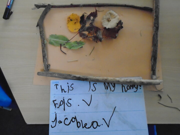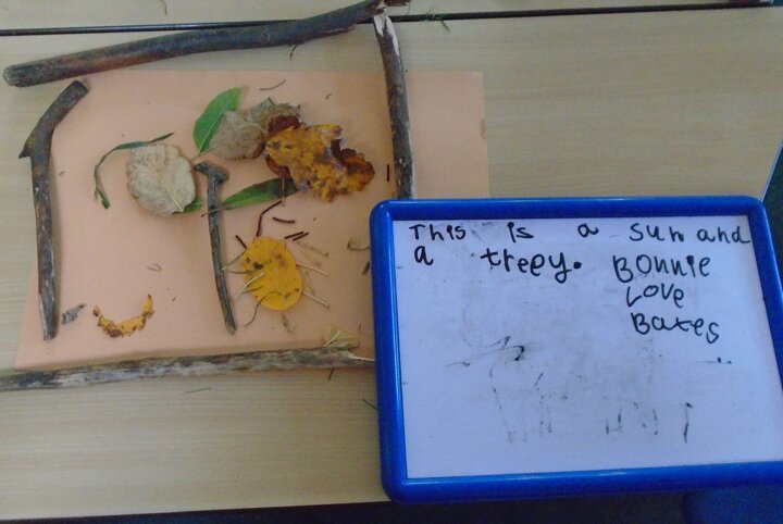 Our Art this week was inspired by all the gorgeous Autumn colours we saw on our walk to the museum. We collected the materials from our own environment and created our own masterpieces!