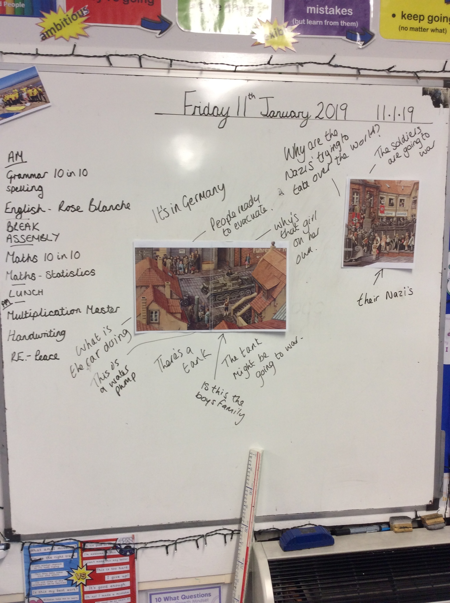 In literacy we are reading the book 'Rose Blanche' about a young girl who lives in Germany during WW2, we have had lots of discussions about characters feelings and emotions, and we are looking forward to what will happen next.